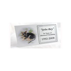 This name plate can be added to any box urn available here at Pet Praise Memorials. You may choose vertical or horizontal designs. You may engrave up to 3 lines of text on the plate.